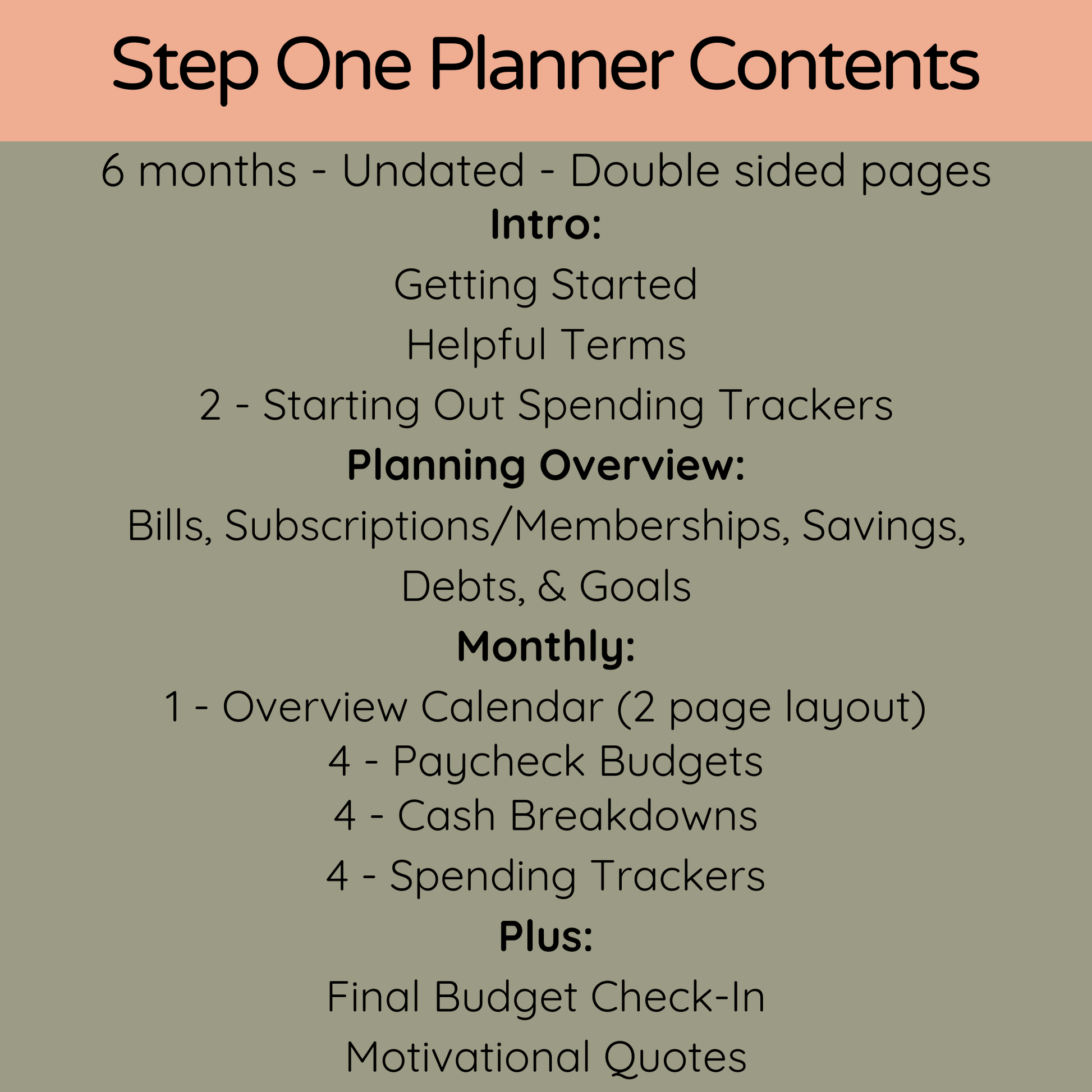 - Fully undated 6-month financial workbook following the Paycheck Planner Step method